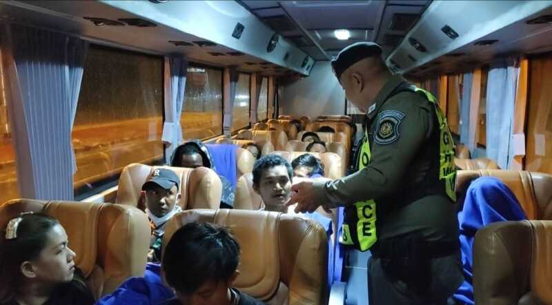 วันที่ 1 ก.ค.2567 เวลา 00.30 น. ตำรวจทางหลวงเพชรบูรณ์ นำโดย พ.ต.ท.วรบดินทร์ เลิศศุภสินสถิต สว.ส.ทล.5 กก.1 บก.ทล.พร้อมด้วยเจ้าหน้าที่ตำรวจหน่วยบริการตำรวจทางหลวงพิจิตร ร่วมกันจับกุมนายณรงค์ฤทธิ์ บุญมา อายุ 52 ปี บ้านเลขที่ 33 หมู่ที่ 1 ต.หินดาด อ.ห้วยแถลง จ.นครราชสีมา ,นายณรงค์ ดาษดื่น อายุ 65 ปี บ้านเลขที่ 110 หมู่ที่ 9 ต.อ่างทอง อ.เมือง จ.กำแพงเพชร และแรงงานต่างด้าว สัญชาติเมียนมา กว่า 13 ชีวิต เป็นชาย 8 คน หญิง 5 คน ตรวจสอบแรงงานต่างด้าวทั้งหมดพบไม่มีหนังสือหรือเอกสารเดินทางแต่อย่างใดพร้อมของกลางรถโดยสารประจำทาง ยี่ห้อ VOLVO สีขาวคาดฟ้า ทะเบียน 16-8545 กรุงเทพมหานคร โทรศัพท์มือถือ ยี่ห้อ ยี่ห้อชัมซุง สีน้ำเงินและสีดำ จำนวน 2 เครื่อง