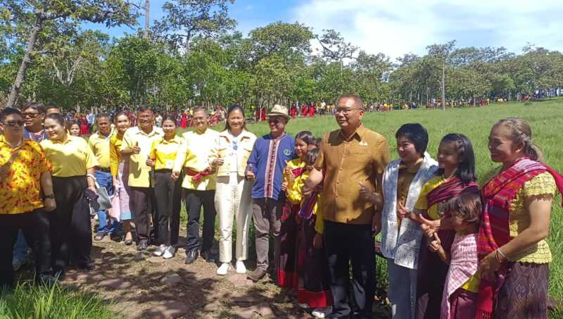 โดยมีนักเรียนและชาวบ้านในพื้นที่ อ.หนองบัวระเหวและอ.เทพสถิต จ.ชัยภูมิร่วมแต่งชุดไทยมาร่วมรำเปิดงานในพิธีครั้งนี้กว่า400คนซึ่งบรรยากาศเต็มไปด้วยความคึกคัก