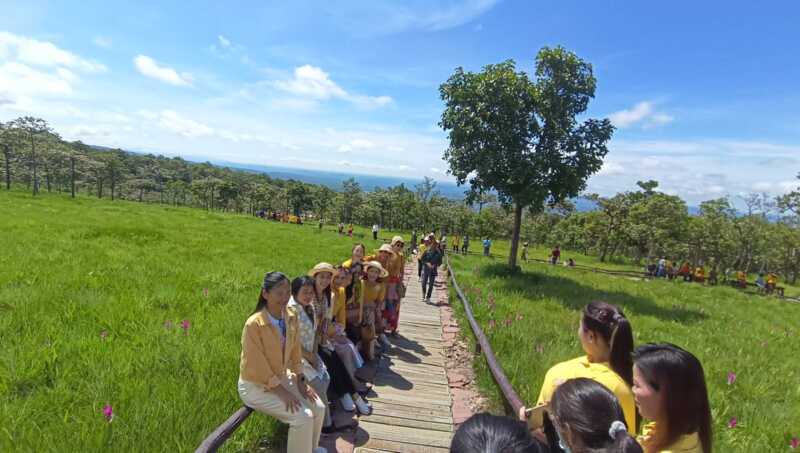 ชัยภูมิชาวบ้านกว่า400คนแต่งชุดพื้นถิ่นและชุดมอญโบราณรำเปิดทุ่งดอกกระเจียวหรือทุ่งบัวสวรรค์ ที่อุทยานไทรทองคึกคัก