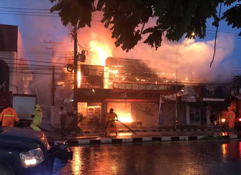 ระทึก เกิดเหตุเพลิงไหม้ร้านขายรถไฟฟ้า-โทรศัพท์มือถือ เผาวอด 6 คูหา ไม่เหลืออะไรเลย