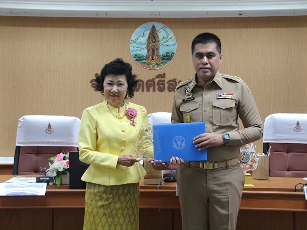 ดร.กัลยาณี ธรรมจารีย์นำทีมรับโล่กรรมการสงเคราะห์ดีเด่นของกระทรวงยุติธรรมจากผู้ว่าศรีสะเกษ