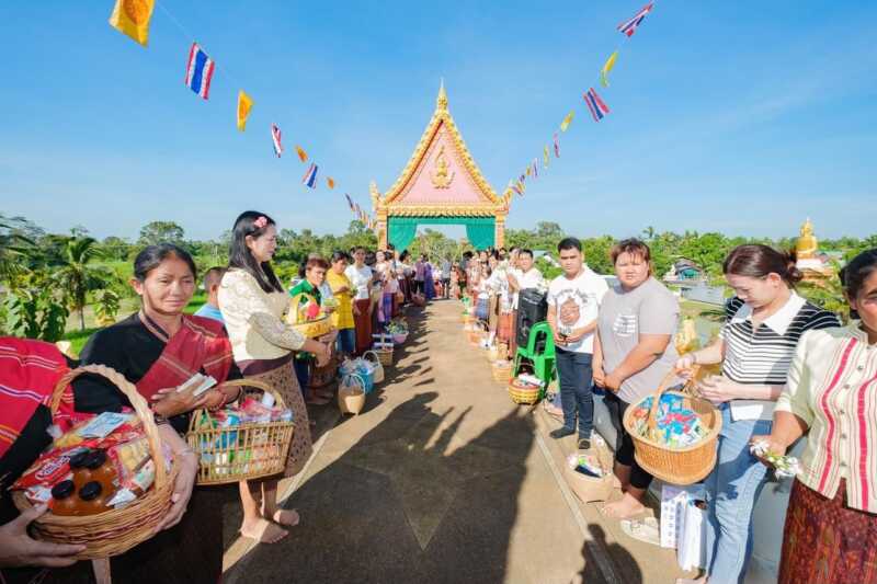 วัดพระธาตุเรืองรองจัดนุ่งผ้าไทย ใส่บาตร เพื่อบูชาคุณ หลวงปู่ธัมมา พิทักษา