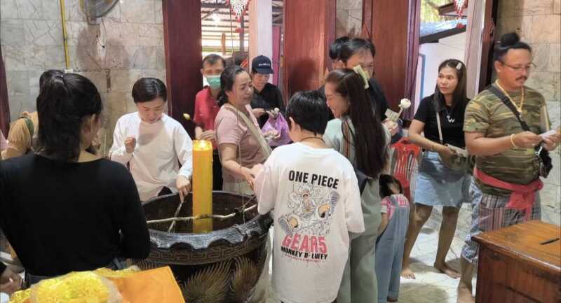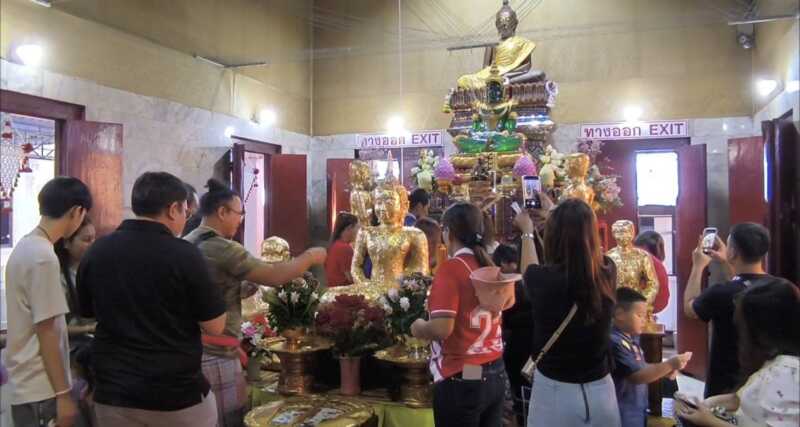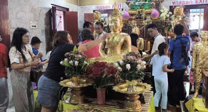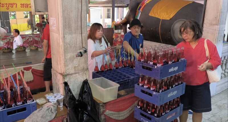 – นักท่องเที่ยวส่องเลขเด็ดอ่างน้ำมนต์วัดหลวงพ่อปากแดง เข้ากราบไหว้หลวงพ่อปากแดง ขอพร โชคลาภ ธุรกิจ หน้าที่การงานพร้อมส่องเลขเด็ดในอ่างน้ำมนต์ 5 6 4 เลขสองตัว 71 – 90