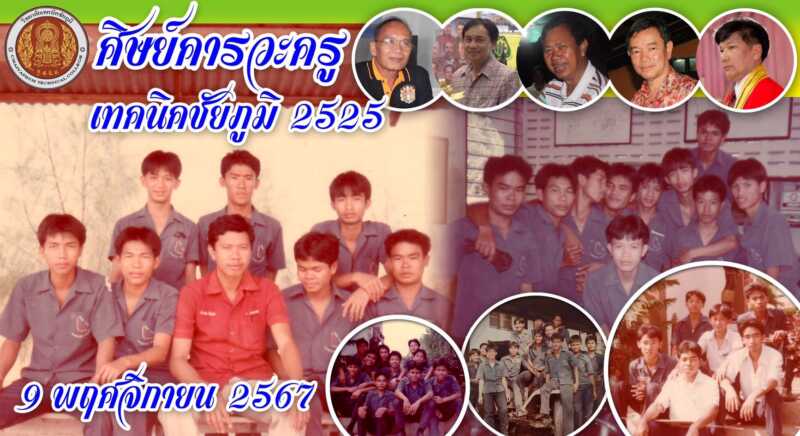 จากกลุ่มศิษย์เก่าวิทยาลัยเทคนิคชัยภูมิ(แผนกช่างยนต์)รุ่นที่ปี2525ได้จบการศึกษาไปกว่า30ปีหลายคนได้ไปทำงานตามวิชาชีพที่เรียนมา แต่หลายคนได้เปลี่ยนอาชีพแล้วแต่โอกาสของแต่ละคน หลายท่านรับราชการประสพผลสำเร็จและก็หลายท่านที่ขาดโอกาส แต่สิ่งหนึ่งที่ทุกคนได้เท่ากันคือความเป็นเพื่อน เพื่อนที่ไม่เคยทอดทิ้งกัน ครั้งที่เรียนเราเคยสนุกสนานกันอย่างไรปัจจุบันเราก็ยังเหมือนเดิม ไม่มียศ ไม่มีตำแหน่ง มีอย่างเดียวคือคำว่าเพื่อน แต่ก็นั้นแหละหลายคนก็จากเราไปอย่างไม่มีวันกลับ เพราะแต่ละคนในปัจจุบันนี้อายุเลย60ปีกันแทบทุกคนแล้วเราทุกคนก็พร้อมไปบ้านเก่ากันทุกคน ดังนั้น พวกเราจึงเห็นผ้องต้องกันว่าควรจัดงานพบปะเพื่อนๆกราบไหว้ครูอาจารย์สักครั้งก่อนเราจะไม่มีโอกาส งานนี้จึงได้เริ่มมีแนวคิดร่วมกัน
