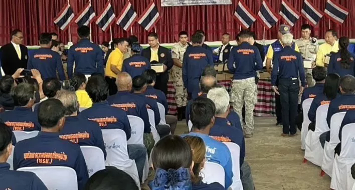 เลขา รมว.มหาดไทยมอบชุด ชรบ.สร้างขวัญกำลังใจให้แก่กำลังชุดรักษาความปลอดภัยหมู่บ้าน (ชรบ.)