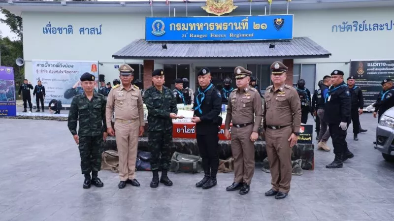 ท้ายที่สุดนี้ ขอขอบคุณเจ้าหน้าที่ หน่วยเฉพาะกิจกรมทหารพรานที่ 21และทุกส่วนราชการที่ได้ปฏิบัติงานอย่างเข้มแข็ง และบูรณาการร่วมกัน จนทำให้การจับกุมในครั้งนี้ประสบความสำเร็จ ขอขอบคุณสื่อมวลชนทุกท่าน ที่มาร่วมเป็นสักขีพยาน และช่วยประชาสัมพันธ์ ข้อมูลข่าวสาร ขอให้สื่อได้ช่วยเป็นกระบอกเสียง เชิญชวนประชาชนร่วมแจ้งข้อมูลข่าวสารเกี่ยวกับการลักลอบค้ายาเสพติด หรือข้อมูลผู้ค้ายาเสพติดผ่านช่องทางตรงของ เจ้าหน้าที่ในหน่วยกำลังป้องกันชายแดนทุกหน่วย และส่วนราชการที่เกี่ยวข้อง ได้ตลอด 24 ชั่วโมง เพื่อให้ปัญหายาเสพติดลดลง และพี่น้องประชาชนมีความปลอดภัยในชีวิต และทรัพย์สิน