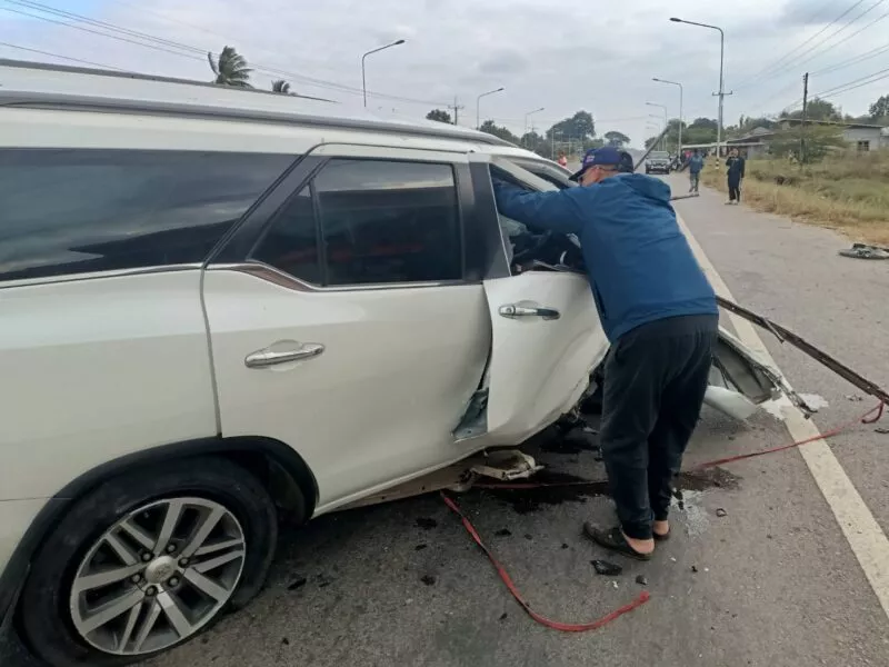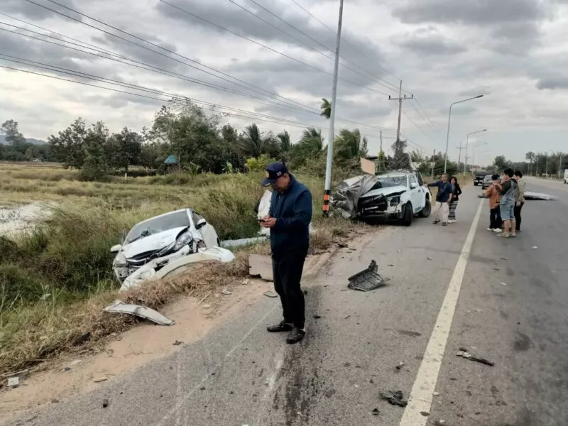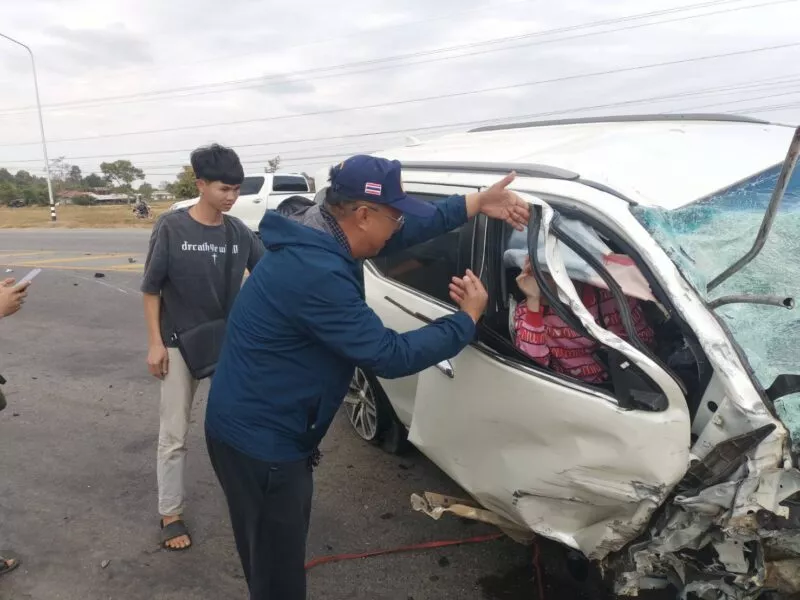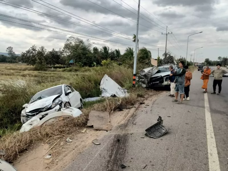อุบัติเหตุรถยนต์ชนกัน จำนวน 3 คัน บริเวณ ใกล้ๆทางเข้า อุทยานภูผาเทิบ ริมถนน ดอนตาล-มุกดาหาร