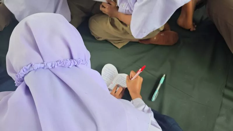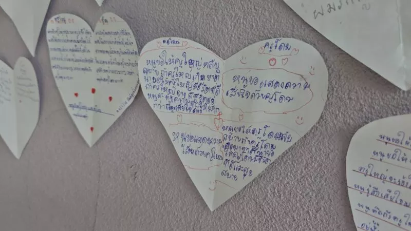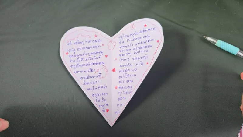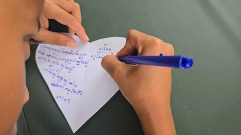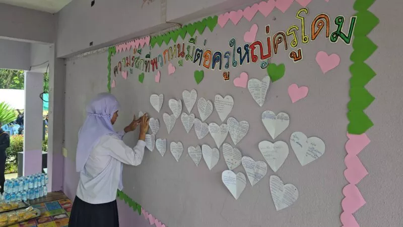 นอกจากนี้แล้ว ยังมีกิจกรรมของนักเรียนโรงเรียน ตชด.บ้านตืองอ ด้วยการเขียนข้อความรำลึกถึง ครู ตชด.2 พ่อลูก ในแผ่นกระดาษสีขาวที่ตัดเป็นรูปหัวใจ ซึ่งส่วนใหญ่นักเรียนจะเขียนข้อความ ถึงความรู้สึกที่นักเรียนเขียนถึงความรู้สึกต่อครูใหญ่ ครูโดม อาทิ รักครูเราคิดถึงครู ไม่น่าจากเราไปเลย ก่อนที่นักเรียนทุกคนจะนำไปติดที่บอร์ดใต้ถุนอาคารเอนกประสงค์ เพื่อใช้เป็นสานที่รำลึกถึงครูทั้ง 2 เพื่อใช้เป็นอนุสรณ์ต่อครูทั้ง 2 คนตลอดไป