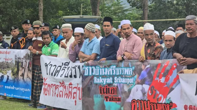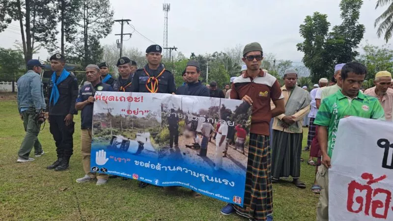 เด็กและผู้ใหญ่ชาวศรีสาครเดือดรวมตัวต้านความรุนแรงวางบึ้ม 2 ตชด.พ่อลูก