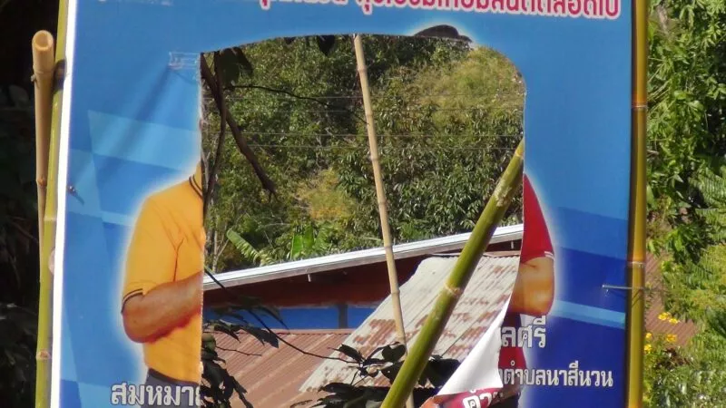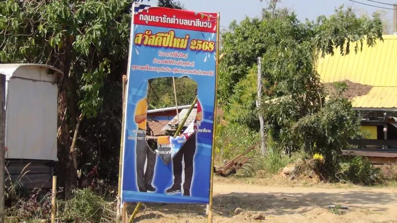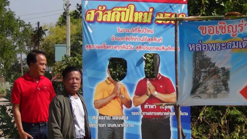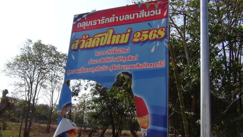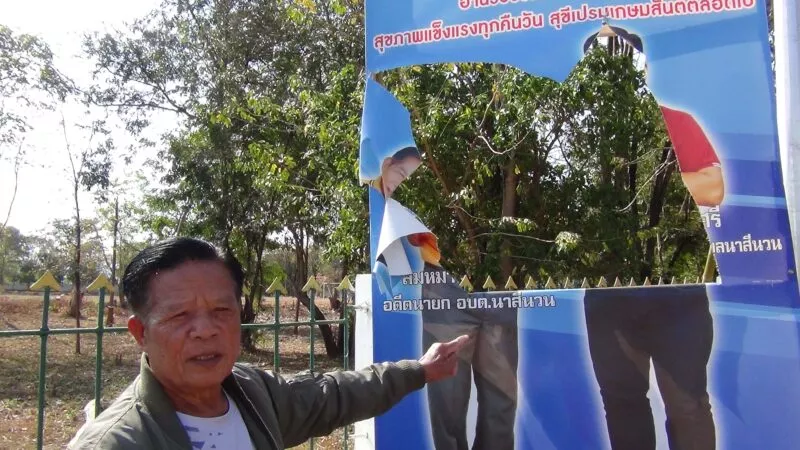 มุกดาหาร การเมืองเล็กเดือด ใกล้หมดวาระทำลายป้ายสวัสดีปีใหม่ว่าที่ผู้สมัครนายก