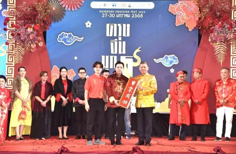มุกดาหาร พ่อเมืองมุกดาหารเปิดงานฉลอง ตรุษจีนมุก ซินจ่าว 4 วัฒนธรรม สุดอลังการ