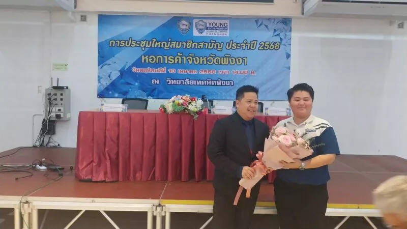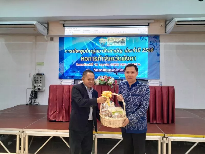 เมื่อเวลา14.00น.ของวันพฤหัสบดีที่ 10 เมษายน พ.ศ. 2568 ณ ห้องประชุม โรงแรมชงโค วิทยาลัยเทคนิคพังงา สาขา 2 ต.ถ้ำน้ำผุด อ.เมือง จ.พังงา ได้มีการประชุมใหญ่สมาชิกสามัญ ประจำปี 2568 โดยมีนายบุญธรรม ถาวรทัศนกิจ รองผวจ.พังงา เป็นประธานในพิธีเปิดการประชุมพร้อมบรรยายพิเศษในหัวข้อ “การทำงานร่วมกันระหว่างภาครัฐและหอการค้าจังหวัดพังงา”