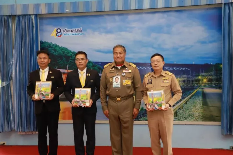 นายวิภู พิวัฒน์ รองผู้ว่าการผลิตไฟฟ้า (รวฟ.) พร้อมด้วยนายประสิทธิ์ อุปชิตร ผู้อำนวยการเขื่อนสิริกิติ์ (อขส.) ผู้บริหาร และผู้ปฏิบัติงานเขื่อนสิริกิติ์