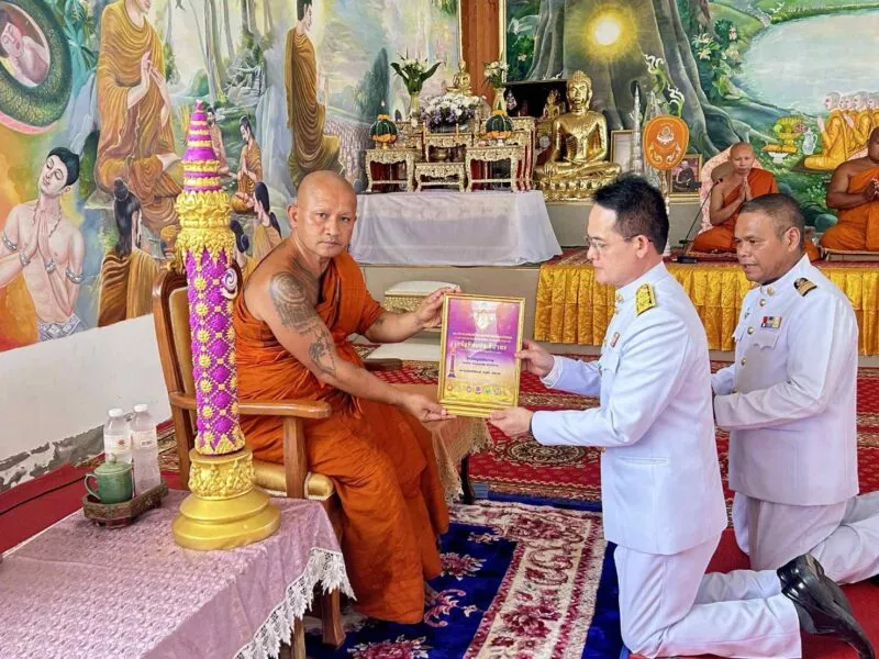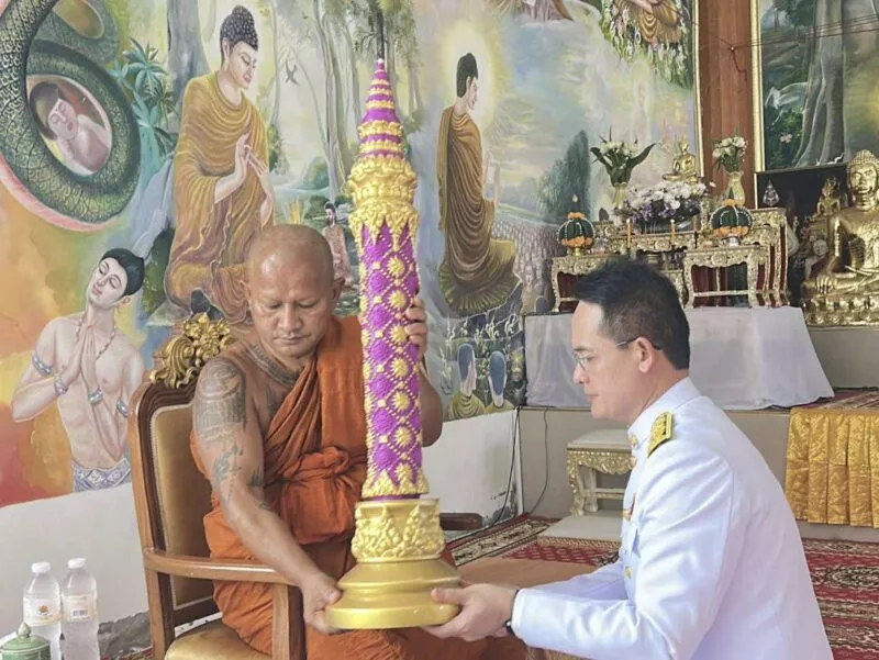 พระองค์เจ้าอทิตยาทรกิติคุณประทานเทียนประทีป “ศรีอทิตยประทีปาทร” ถวายแด่ “หลวงปู่โชติ” วัดศรีสมบูรณ์รัตนาราม เนื่องในเทศกาลเข้าพรรษา