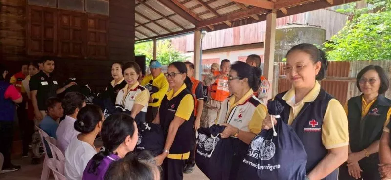 เหล่ากาชาดจังหวัดอุตรดิตถ์ มอบถุงยังชีพให้ กับครัวเรือนที่ประสบภัยน้ำป่าไหลหลาก ในพื้นที่ อำเภอฟากท่า จังหวัดอุตรดิตถ์
