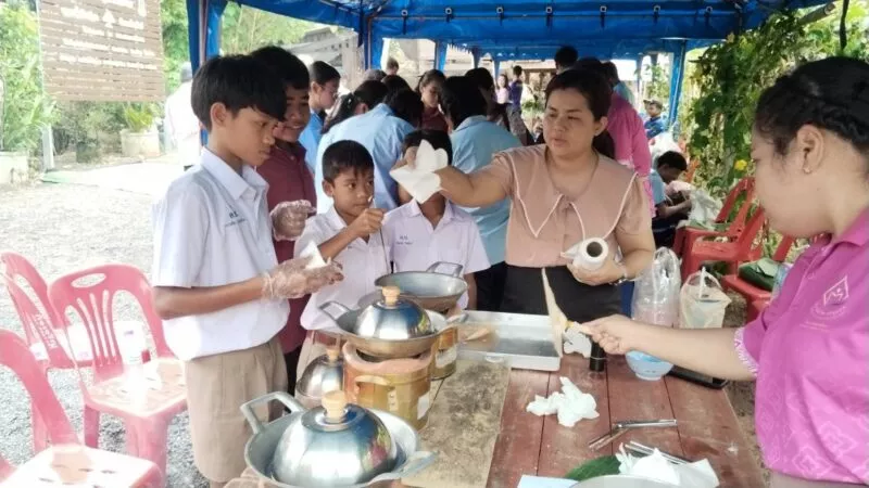 นักเรียนจากโรงเรียนทับปุดวิทยา และโรงเรียนบ้านคอกช้าง ได้มีโอกาสเรียนรู้เชิงปฏิบัติ โดยได้ร่วมลงมือทำขนมพื้นบ้าน และทดลองจักสานด้วยตนเองอย่างสนุกสนาน ซึ่งช่วยเสริมประสบการณ์ตรงในการเรียนรู้ภูมิปัญญาท้องถิ่น และสร้างแรงบันดาลใจในการอนุรักษ์วัฒนธรรมของชุมชน