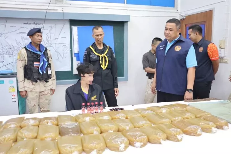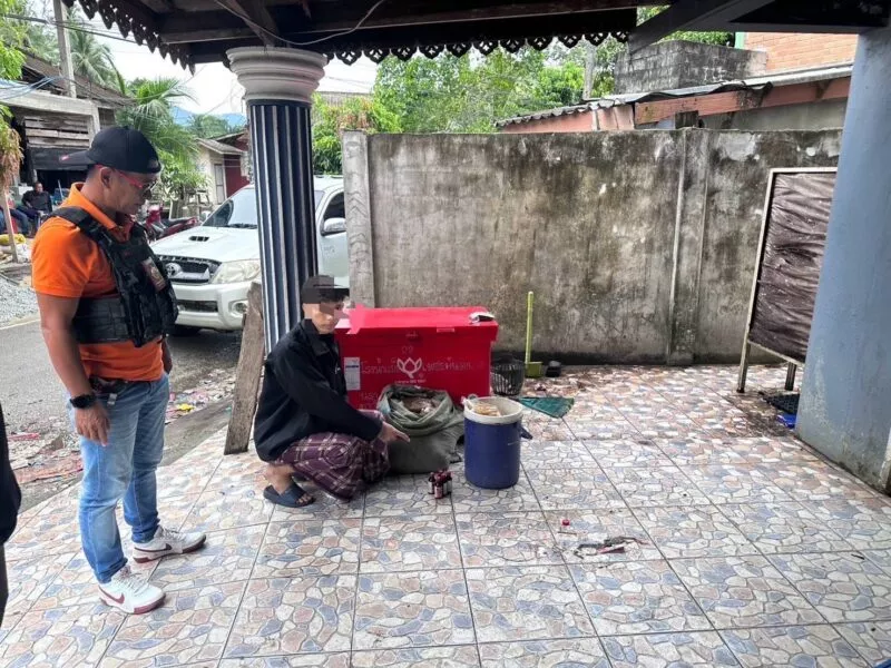อ.ระแงะ ประกาศศึกพืชกระท่อม กองกำลัง 3 ฝ่าย บุกจับหนุ่มวัย 24 ปี ยึดน้ำต้มกระท่อมกว่า 40 ถุง พร้อมยาแก้ไอ