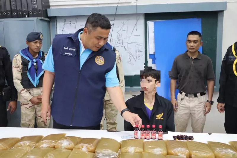 อ.ระแงะ ประกาศศึกพืชกระท่อม กองกำลัง 3 ฝ่าย บุกจับหนุ่มวัย 24 ปี ยึดน้ำต้มกระท่อมกว่า 40 ถุง พร้อมยาแก้ไอ