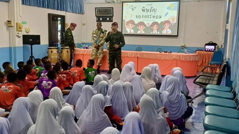 ในโอกาสนี้ ร.ท.พัชรพฤกษ์ สิมอุด จากชุดสันติสุขที่ 305 หน่วยเฉพาะกิจสันติสุข ร่วมกับชุดทักษิณสัมพันธ์ที่ 331 และ อส.อ.กรงปินัง ได้ให้ความรู้และบรรยายเรื่องพิษภัยของพืชกระท่อม และยาเสพติดทุกชนิด แก่เด็กนักเรียน เพื่อสร้างภูมิคุ้มกันและตระหนักรู้ถึงโทษภัยอันตรายอย่างรอบด้านอีกด้วย.
