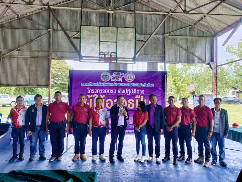 วันที่ 30 สิงหาคม 2568 นายบำรุง ปิยนามวาณิช นายกองค์การบริหารส่วนจังหวัดพังงา ให้เกียรติเป็นประธานในพิธีเปิดโครงการฝึกอบรมเชิงปฏิบัติการผู้ใช้อาวุธปืน ครั้งที่ 8 มี นายรวยชัย กิตติพรหมวงศ์ นายกสมาคมกีฬาแห่งจังหวัดพังงา นายวุติพงค์ หัตถพร นายกสมาคมยิงปืนเขาช้าง พร้อมด้วยคณะกรรมการบริหารสมาคมฯ สมาคมกีฬาแห่งจังหวัดพังงา ร่วมกับชมรมกีฬายิงปืนจังหวัดพังงา โดยการสนับสนุนงบประมาณจากองค์การบริหารส่วนจังหวัดพังงา จัดโครงการฝึกอบรมเชิงปฏิบัติการผู้ใช้อาวุธปืน ครั้งที่ 8 ที่ อาคารอเนกประสงค์ สำนักงานการท่องเที่ยวและกีฬาจังหวัดพังงา.