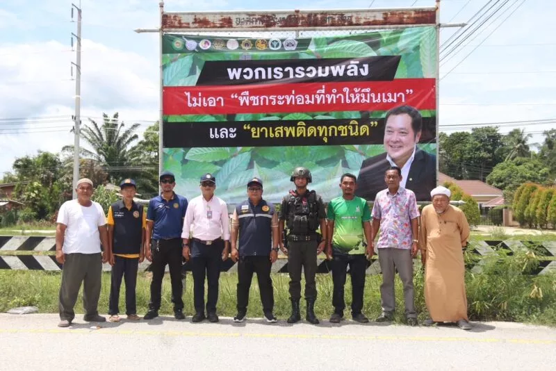 ชาวบ้านตำบลกะลุวอและหน่วยงานที่เกี่ยวข้อง ผนึกกำลังเปิด “ปฏิบัติการ วาระ 120 วัน ไม่เอาพืชกระท่อม” ติดป้ายรณรงค์งดการซื้อขาย–ใช้พืชกระท่อม สร้างผลกระทบต่อชุมชน