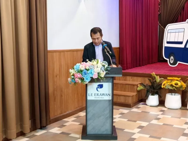 วันที่ 11 กันยายน 2568 ณ ห้องประชุมนายเหมือง โรงแรมเลอเอราวัณ อ.เมือง จ.พังงา นางสาวนุชกร สายแสง ขนส่งจังหวัดพังงา เป็นประธานเปิดโครงการอบรมเพิ่มศักยภาพด้านความปลอดภัยของรถรับส่งนักเรียน มีผู้เข้าร่วมอบรมกว่า 70 คน ประกอบด้วยผู้ประกอบการรถสองแถวรับจ้างและผู้ประกอบอาชีพรถรับส่งนักเรียนในพื้นที่