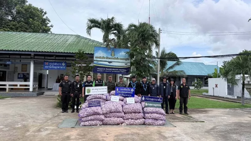 มุกดาหาร – สถานีเรือมุกดาหาร (นรข.) สนธิกำลังหน่วยความมั่นคงในพื้นที่ตรวจยึดกระเทียมแห้งจำนวน 74 กระสอบ น้ำหนัก 1,480 กก. ที่ริมฝั่งแม่น้ำโขงบ้านนาโปน้อย ลักลอบนำเข้าจากประเทศเพื่อนบ้าน ส่วนผู้ต้องหาหลบหนีไปได้