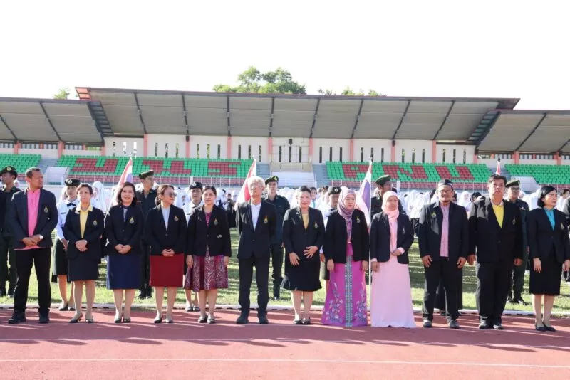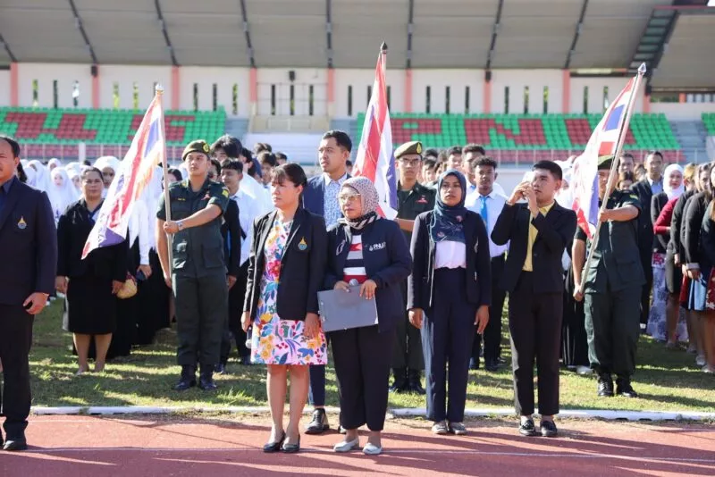 ม.นราธิวาสราชนครินทร์ จัดพิธีเคารพธงชาติไทย เนื่องในวันพระราชทานธงชาติ ประจำปี 2568 รวมพลังร้องเพลงชาติแสดงความภักดี พร้อมส่งกำลังใจถึงเจ้าหน้าที่ผู้ปฏิบัติหน้าที่ชายแดนไทย–กัมพูชา