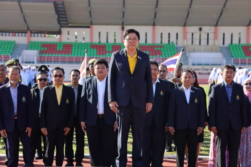 โดยพิธีดังกล่าวได้รับเกียรติจากผู้ช่วยศาสตราจารย์ ดร.จงรัก หลาคีย์ นายกสภามหาวิทยาลัยนราธิวาสราชนครินทร์ เป็นประธานในพิธีนำกล่าวคำปฏิญาณตนแสดงความจงรักภักดีต่อชาติ พร้อมทั้งนำขับร้องเพลงชาติไทย โดยมีผู้ช่วยศาสตราจารย์ ดร.ปรีชา สะแลแม อธิการบดีมหาวิทยาลัยนราธิวาสราชนครินทร์ ร่วมกับคณะผู้บริหาร คณาจารย์ บุคลากรทางการศึกษา ตลอดจนนักศึกษาอย่างพร้อมเพรียง