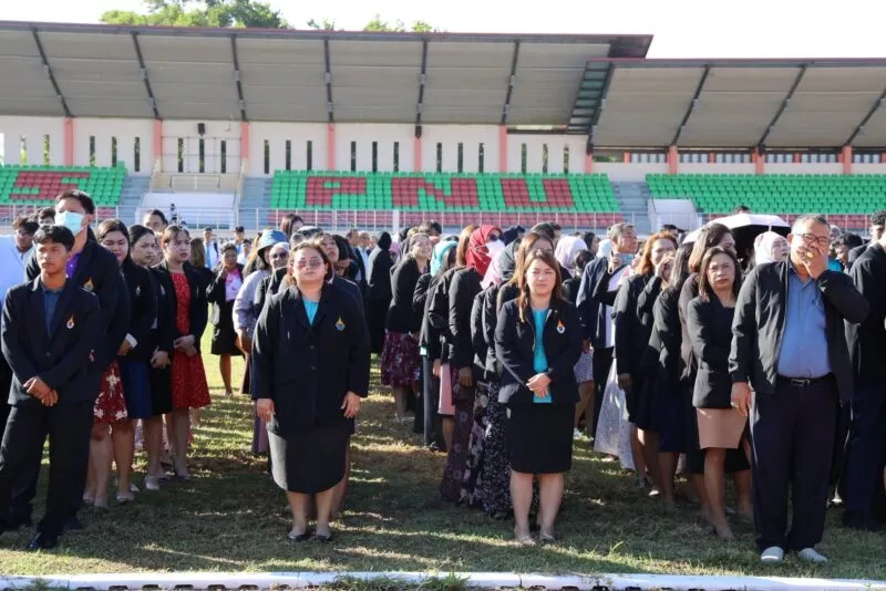 บรรยากาศภายในงานเป็นไปด้วยความเรียบร้อย สมเกียรติ และเต็มไปด้วยความรู้สึกภาคภูมิใจของชาวมหาวิทยาลัยนราธิวาสราชนครินทร์ ที่ได้ร่วมกันธำรงไว้ซึ่งค่านิยมความเป็นไทย พร้อมยืนยันเจตนารมณ์ในการเทิดทูนสถาบันชาติ ศาสนา พระมหากษัตริย์ และร่วมกันปลูกฝังความรักชาติให้แก่เยาวชนอย่างยั่งยืน.