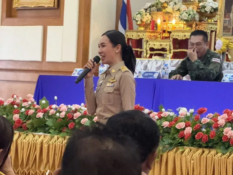“ผู้กองแคท” โชว์ลูกคอร้องเพลง “สาวนาสั่งแฟน” กลางที่ประชุมกำนัน-ผู้ใหญ่บ้าน สร้างความฮือฮากลางหอประชุม