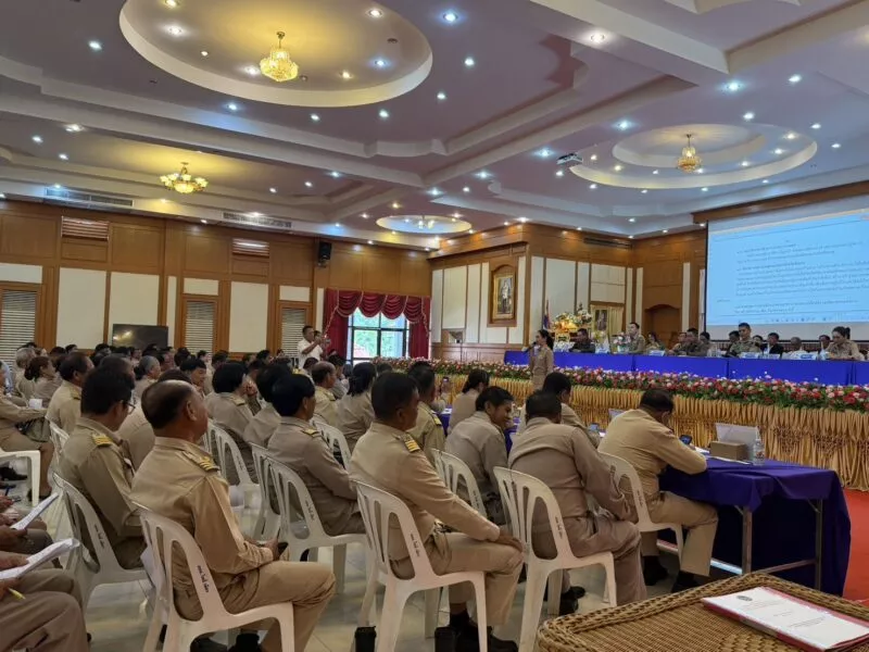 เมื่อวันที่ 3 ต.ค. 2568 ที่หอประชุมแม่ฟ้าหลวง โรงเรียนเฉลิมพระเกียรติสมเด็จพระศรีนครินทร์ ศรีสะเกษ อ.เมือง จ.ศรีสะเกษ นายกันวลินทร์ เมืองแก้ว นายอำเภอเมืองศรีสะเกษ เป็นประธานเปิดการประชุมคณะกรรมการบริหารงานอำเภอแบบบูรณาการหน่วยงานราชการ นายกองค์กรปกครองส่วนท้องถิ่น ทุกแห่ง ปลัดองค์กรปกครองส่วนท้องถิ่น ทุกแห่ง และการประชุมกำนัน ผู้ใหญ่บ้าน ประจำเดือนตุลาคม 2568 ของ อ.เมืองศรีสะเกษ จ.ศรีสะเกษ