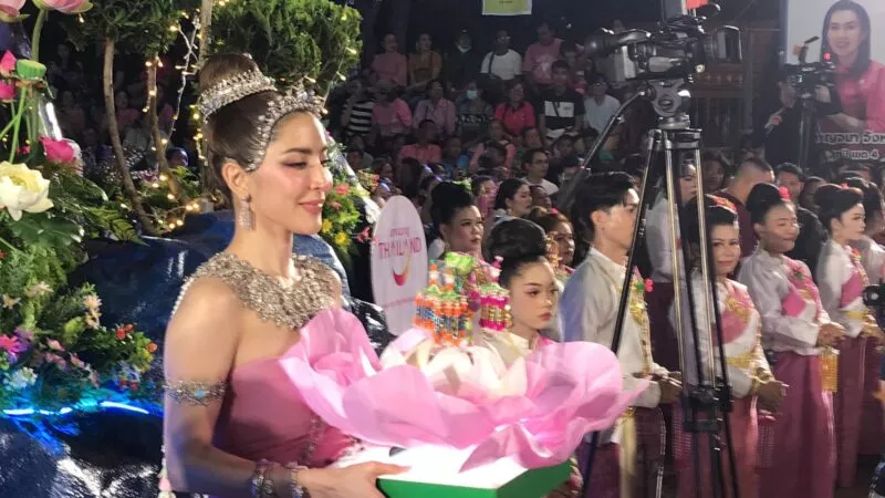 ชัยภูมิพิ้งกี้ ดาราสาวเชิญพานดอกบัวแด่ รองนายกฯ เปิดงานประเพณีบุญกระธูปสุดยิ่งใหญ่ นักท่องเที่ยวนับหมื่นแห่ชมพิธีและต้นกระธูปสุดคึกคัก
