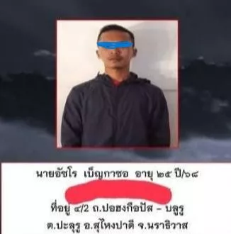 โดยเป้าหมายที่ 1 บ้านเลขที่ 4/2 ต.ปะลุรู อ.สุไหงปาดี จ.นราธิวาส เป็นบ้านพักของนายมะยูฮา เบ๊ญกาซอ เป็นบิดาของนายอัซโร เบ็ญกาซอ อายุ 25 ปี บุคคลเป้าหมาย โดยนายมะยูฮา เป็นผู้นำตรวจค้นในบ้านพัก ไม่พบสิ่งผิดกฏหมายแต่อย่างใด ได้ทำการตรวจยึดสิ่งของ 5 รายการ ไปตรวจสอบ คือ 1.โทรศัพท์มือถือยี่ห้อ Vivo V30 สีดำ 1 เครื่อง 2.หมวกกะปิเยาะสีขาว 1 ใบ 3.เสื้อยืดแขนสั้นสีดำ 1 ตัว 4.ผ้าโสร่งสีเขียว 1 ผืน และ 5.กางเกงขายาวสีครีม 1 ตัว