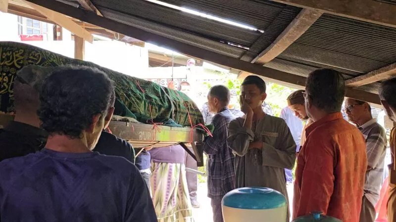 ผู้สื่อข่าวรายงานว่า บรรยากาศที่บ้านเลขที่ 48 หมู่ 1 ต.ยี่งอ อ.ยี่งอ จ.นราธิวาส ซึ่งเป็นบ้านของผู้เสียชีวิต เต็มไปด้วยความเศร้าโศกเสียใจ โดยมีบรรดาญาติมิตรทั้งใกล้ชิดและจากพื้นที่อื่นเดินทางมาร่วมไว้อาลัยและให้กำลังใจกับครอบครัว โดยในวันนี้ ทางญาติได้นำร่างของคุณยายรอเมาะไปฝังตามพิธีทางศาสนาอิสลาม ที่ กูโบร์จืองา บ้านบูเก๊ะปาลัส ม.4 ต.ยี่งอ อ.ยี่งอ จ.นราธิวาส