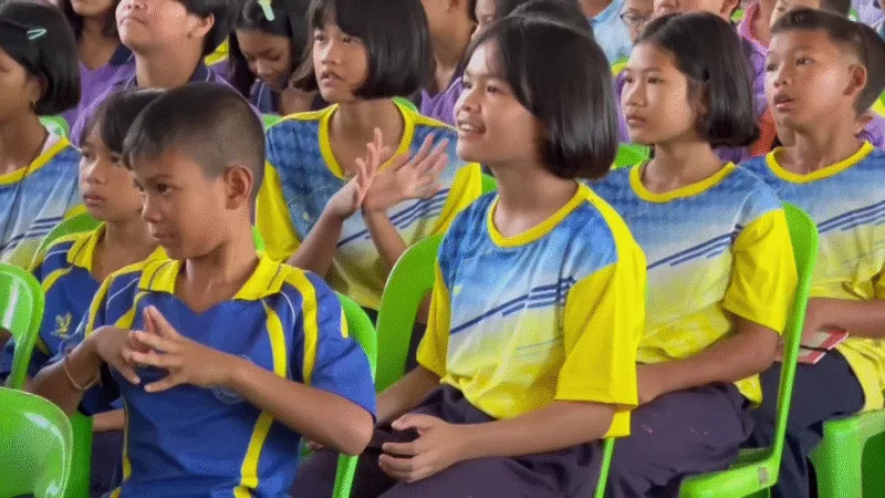 บรรยากาศภายในโรงเรียนเต็มไปด้วยความอบอุ่นและปลื้มใจ เด็กนักเรียนและประชาชนในพื้นที่ต่างมารอต้อนรับ พร้อมร่วมให้กำลังใจ “กัน จอมพลัง” ที่มาช่วยดูแลและผลักดันโครงการเพื่อความปลอดภัยของคนชายแดนอย่างต่อเนื่อง