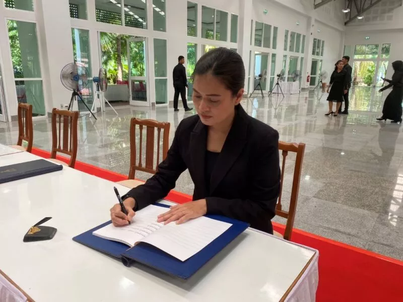 ด้าน นางสาวธนัฏฐา ตูแวมะ เจ้าหน้าที่สถานสงเคราะห์เด็กชายนราธิวาส ได้กล่าวว่า การสูญเสียครั้งนี้ ถือเป็นการสูญเสียครั้งยิ่งใหญ่ของแผ่นดินไทย พวกเราชาวไทยทุกหมู่เหล่าต่างรู้สึกโศกเศร้าอาลัยยิ่ง จึงมาร่วมน้อมรำลึกและลงนามถวายความอาลัย ด้วยความจงรักภักดีและสำนึกในพระมหากรุณาธิคุณอย่างสุดซึ้ง