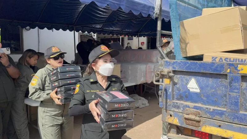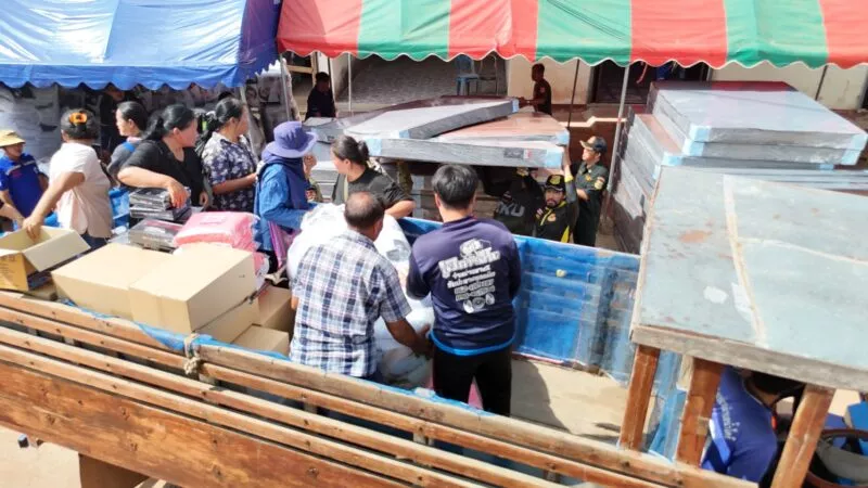 เมื่อวันที่ 30 ตุลาคม 2568 เวลา 13.00 น. บริเวณที่ทำการ อบต.น้ำไคร้ อ.น้ำปาด จ.อุตรดิตถ์ มูลนิธิร่วมกตัญญู นำโดย ดร.รัตนา สมสกุลรุ่งเรือง ประธานมูลนิธิร่วมกตัญญู พร้อมด้วย ดร.บิณฑ์ บรรลือฤทธิ์ ผู้จัดการฝ่ายกิจกรรมพิเศษมูนิธิฯ คุณ สุรินทร์ สู่สวัสดิ์ ผู้จัดการฝ่ายกฎหมายมูลนิธิฯ คุณปิยะลักษณ์ ถิ่นแก้ว หัวหน้าฝ่ายปฎิบัติการมูลนิธิฯ พร้อมด้วยเจ้าหน้าที่และอาสาสมัครกว่า 50 นาย พากันขนที่นอนยางพารา 6 ฟุต ผ้าปูที่นอน หมอน ผ้าห่ม เตาแก๊ส หม้อหุงข้าว กระดิกน้ำร้อน เดินทางมามอบให้กับชาวบ้านในพื้นที่ของตำบลน้ำไคร้ เพื่อบรรเทาทุกข์ให้กับชาวบ้านหลังจากที่พากันสิ้นเนื้อประดาตัวจากภัยพิบัติน้ำป่าไหลหลากเข้าท่วมในพื้นที่ ถือเป็นการมอบสิ่งของเหล่านี้ครั้งแรกในพื้นที่กับชาวบ้าน และเป็นหน่วยงานแรกที่มอบสิ่งของต่าง ๆเหล่านี้หลังเกิดภัยพิบัติ สร้างความปลาบปลื้มดีใจให้กับชาวบ้านเป็นอย่างมาก บรรยากาศเต็มไปด้วยรอยยิ้มทั้งผู้ให้และผู้รับท่ามกลางอากาศที่ร้อนอบอ้าวในพื้นที่ โดยชาวบ้านต่างรวมตัวกันนำเอารถบรรทุกทางการเกษตรหรือรถไทยแลนด์ มาขนเอาสิ่งของต่าง ๆ จนเต็มรถเพื่อกลับไปยังบ้านพักของแต่ละครอบครัว