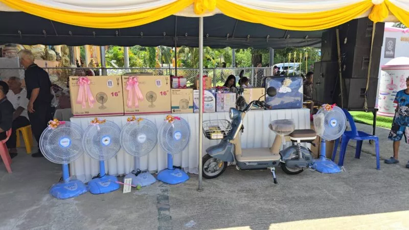 บุญใหญ่ วัดลำภู นราธิวาส “แตก” ชาวบ้านแห่ลุ้นโชค ธ.ออมสินภาค 18 จัดเต็ม โปรยทานลอยฟ้า แจก “แหวนทอง-จักรยานไฟฟ้า” มูลค่ากว่าครึ่งแสน