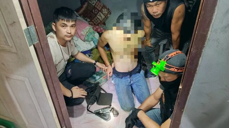 เอราวัณพังงาบุกจับกลางดึก ทลายแหล่งมั่วสุมยาเสพติดท้ายเหมือง รวบหนุ่มหลบหมายจับค้ายา-เจอปืนเถื่อนกลางบ้านเช่า