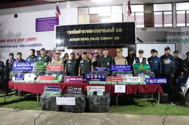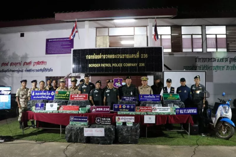 วันที่ 3 พ.ย.68 เวลา 1900 กองทัพภาคที่ 2 โดย พลโท วีระยุทธ รักษ์ศิลป์ แม่ทัพภาคที่ 2 ในฐานะผู้บัญชาการหน่วยบัญชาการสกัดกั้นและปราบปรามยาเสพติด สารตั้งต้น และเคมีภัณฑ์ชายแดนภาคตะวันออกเฉียงเหนือ (มทภ.2/ผบ.นบ.ยส.24) โดยมอบหมายให้ พันเอก สุภัทร ชูตินันทน์ ผู้อำนวยการส่วนอำนวยการหน่วยบัญชาการสกัดกั้นและปราบปรามยาเสพติด สารตั้งต้น และเคมีภัณฑ์ชายแดนภาคตะวันออกเฉียงเหนือ ร่วมแถลงข่าวกรณี กองร้อยเฉพาะกิจตำรวจตระเวนชายแดนที่ 236 จับกุมผู้ต้องหาขบวนการค้ายา จำนวน 2 ราย พร้อมของกลางยาเสพติดให้โทษประเภท 1 (ไอซ์) จำนวน 10 กระสอบ น้ำหนัก 490 กิโลกรัม ในพื้นที่ จังหวัดนครพนม พร้อมหน่วยงานความมั่นคงในพื้นที่ โดยมี พลตำรวจตรี วุฒิพงษ์ เย็นจิตต์ ผู้บังคับการ กองบังคับการตำรวจตระเวนชายแดนภาค 2 (ผบก.ตชด.ภาค 2) เป็นประธานการแถลงข่าว ณ กองร้อยเฉพาะกิจตำรวจตระเวนชายแดนที่ 236 ตำบลในเมือง อำเภอเมืองนครพนม จังหวัดนครพนม