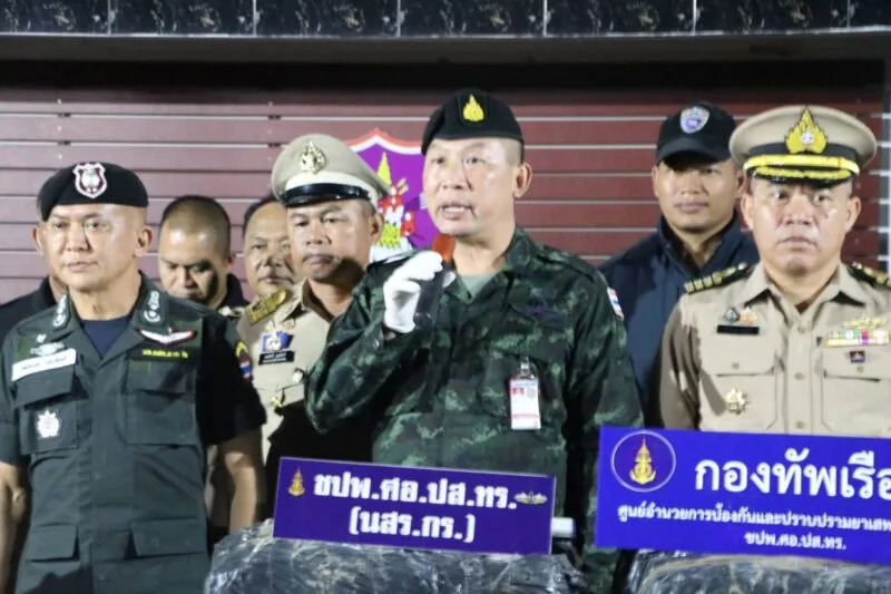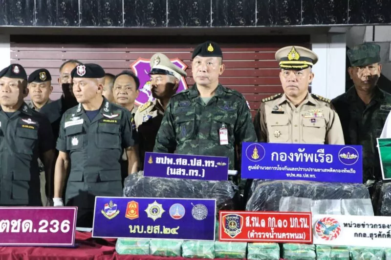 วันที่ 3 พ.ย.68 เวลา 1900 กองทัพภาคที่ 2 โดย พลโท วีระยุทธ รักษ์ศิลป์ แม่ทัพภาคที่ 2 ในฐานะผู้บัญชาการหน่วยบัญชาการสกัดกั้นและปราบปรามยาเสพติด สารตั้งต้น และเคมีภัณฑ์ชายแดนภาคตะวันออกเฉียงเหนือ (มทภ.2/ผบ.นบ.ยส.24) โดยมอบหมายให้ พันเอก สุภัทร ชูตินันทน์ ผู้อำนวยการส่วนอำนวยการหน่วยบัญชาการสกัดกั้นและปราบปรามยาเสพติด สารตั้งต้น และเคมีภัณฑ์ชายแดนภาคตะวันออกเฉียงเหนือ ร่วมแถลงข่าวกรณี กองร้อยเฉพาะกิจตำรวจตระเวนชายแดนที่ 236 จับกุมผู้ต้องหาขบวนการค้ายา จำนวน 2 ราย พร้อมของกลางยาเสพติดให้โทษประเภท 1 (ไอซ์) จำนวน 10 กระสอบ น้ำหนัก 490 กิโลกรัม ในพื้นที่ จังหวัดนครพนม พร้อมหน่วยงานความมั่นคงในพื้นที่ โดยมี พลตำรวจตรี วุฒิพงษ์ เย็นจิตต์ ผู้บังคับการ กองบังคับการตำรวจตระเวนชายแดนภาค 2 (ผบก.ตชด.ภาค 2) เป็นประธานการแถลงข่าว ณ กองร้อยเฉพาะกิจตำรวจตระเวนชายแดนที่ 236 ตำบลในเมือง อำเภอเมืองนครพนม จังหวัดนครพนม