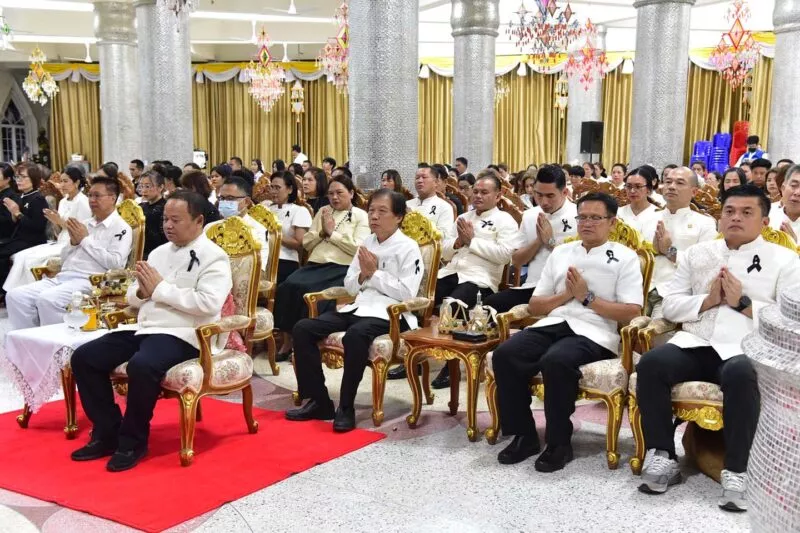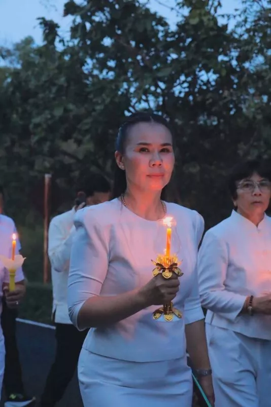 ภายหลังเสร็จสิ้นขบวนจุดเทียน ได้จัดพิธีเจริญพระพุทธมนต์เพื่อความเป็นสิริมงคลแก่ผู้เข้าร่วมงานและจังหวัดมุกดาหารบรรยากาศโดยรวมเป็นไปอย่างสงบ สวยงาม และเปี่ยมด้วยศรัทธาในประเพณีลอยกระทงอันทรงคุณค่าทางวัฒนธรรมของชาวมุกดาหาร