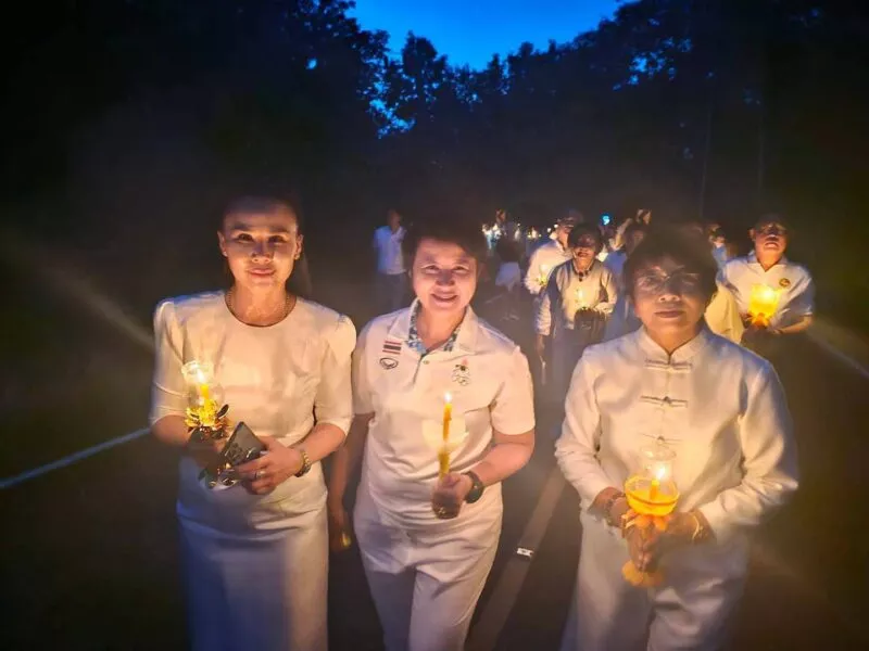 จังหวัดมุกดาหารจัดกิจกรรมจุดเทียนขึ้นภู วัดรอยพระพุทธบาทภูมโนรมย์ และพิธีเจริญพระพุทธมนต์ เนื่องในงานประเพณีลอยกระทงบูชาพระแม่คงคา