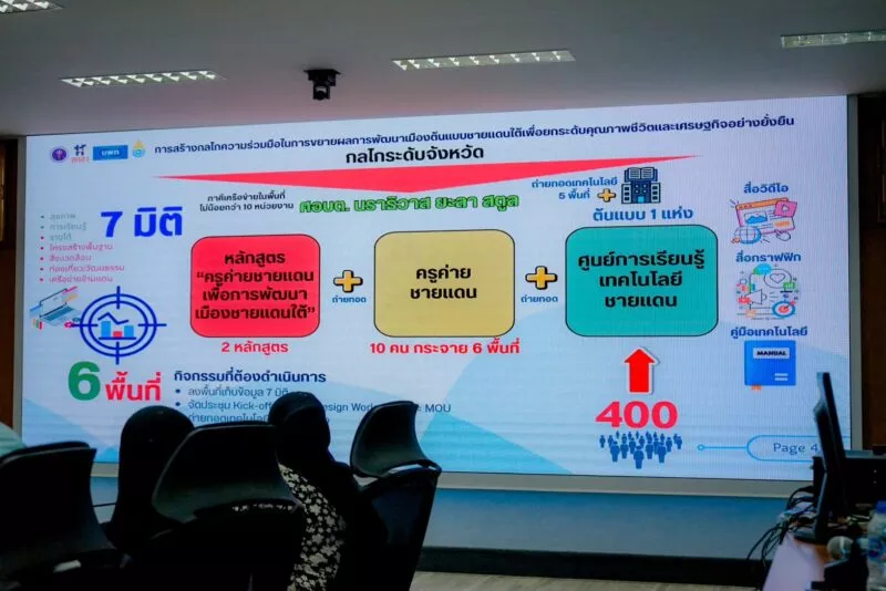 นายวีรพัฒน์ บุณฑริก รองผู้ว่าราชการจังหวัดนราธิวาส กล่าวว่า พื้นที่จังหวัดนราธิวาส ยะลา และสตูล ถือเป็นยุทธศาสตร์สำคัญของประเทศ ทั้งด้านภูมิรัฐศาสตร์ การค้า การลงทุน และการเชื่อมโยงสู่มาเลเซียและอาเซียน แม้จะมีทรัพยากรอุดมสมบูรณ์และศักยภาพด้านการท่องเที่ยวระดับโลก แต่ยังเผชิญปัญหาความยากจน ความเหลื่อมล้ำ สถานการณ์ความไม่สงบ และความท้าทายด้านโครงสร้างพื้นฐานและเทคโนโลยี