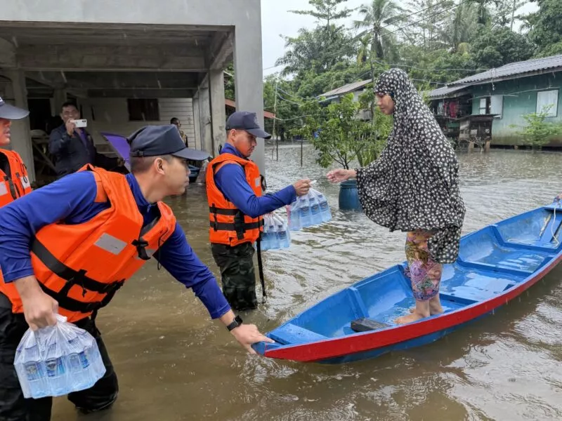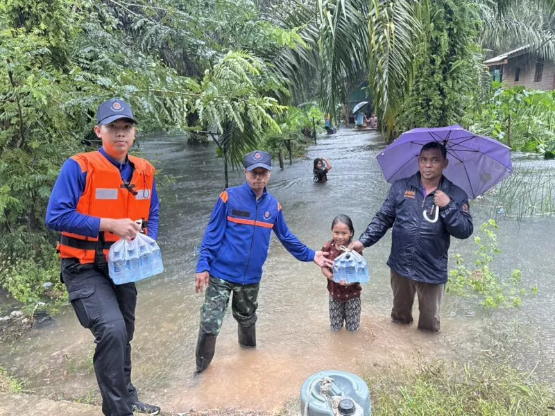 นอกจากนี้ หน่วยทหารพัฒนาที่ 4 นราธิวาส ยังได้แจกจ่ายน้ำดื่ม จำนวน 200 ขวดให้กับประชาชนที่ประสบอุทกภัย เพื่อช่วยเหลือบรรเทาความเดือดร้อน