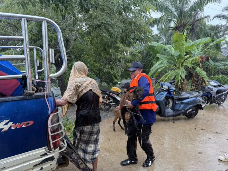 เมื่อวันที่ 23 พฤศจิกายน 2568 ที่ ม.7 บ.โคกสะตอ ต.สุไหงปาดี อ.สุไหงปาดี จ.นราธิวาส หน่วยทหารพัฒนาที่ 41 สนภ.4 นทพ./ศบภ.นพค.41 สนภ.4 นทพ. จัดเจ้าหน้าที่ชุดบรรเทาสาธารณภัย จำนวน 10 นาย พร้อมรถยนต์ตรวจการณ์ 1 คัน เข้าดำเนินการช่วยเหลือขนย้ายสัตว์และสิ่งของภายในบ้านเรือนของประชาชนที่มีความเสี่ยงจากอุทกภัย จำนวน 15 ครัวเรือน