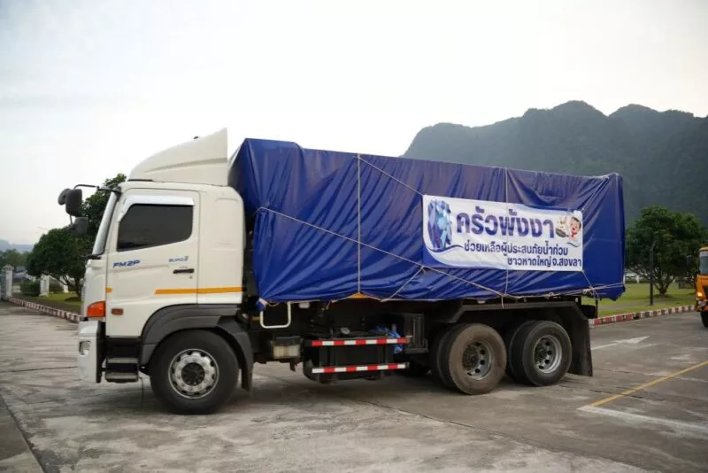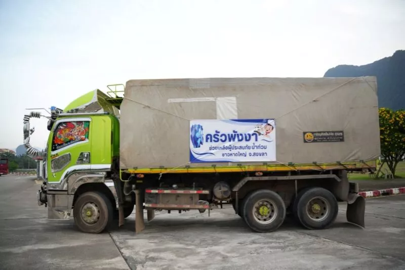 รถโดยสารพร้อมรถบรรทุกเครื่องครัวและวัตถุดิบสำหรับประกอบอาหาร ที่ได้รับบริจาคมาจากผู้มีจิตเมตตาจากทุกภาคส่วน ออกเดินทางจากศาลากลางจังหวัดพังงา มุ่งหน้าสู่อำเภอหาดใหญ่ จ.สงขลา เพื่อจัดตั้งโรง “ครัวพังงา ช่วยเหลือผู้ประสบภัย” โดยครัวพังงาจะประจำอยู่ที่ศูนย์พักพิงโรงเรียนหาดใหญ่รัฐประชาสรรค์ ทำการปรุงอาหารร้อน ๆ สดใหม่ แจกจ่ายให้กับผู้ประสบภัย 2 มื้อ คือมื้อเที่ยงและมื้อเย็น วันละ 4,000 ชุด โดยทีมแม่ครัวอาสาจากทั้ง 8 อำเภอ จะสลับหมุนเวียนปฏิบัติหน้าที่ครั้งละ 3 วัน