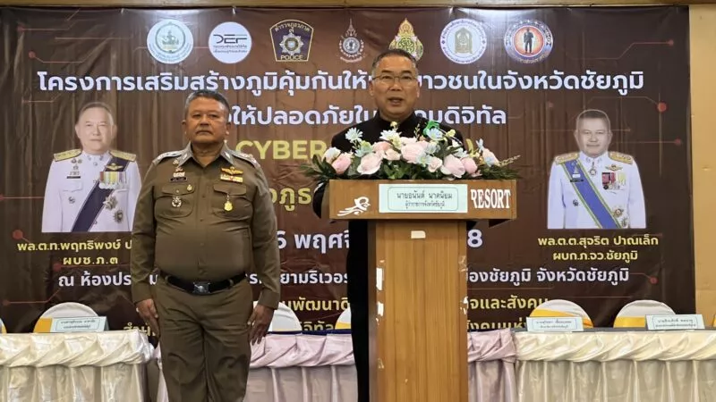 ตำรวจภูธรจังหวัดชัยภูมิ จับมือ กระทรวงดิจิทัลฯ เครือข่ายสถานศึกษาฯเดินหน้ายุทธการ “รู้ทันภัยไซเบอร์” ลุยสร้าง “ครูตำรวจต้นแบบ” ถ่ายทอดภูมิคุ้มกันสู่เยาวชนกว่า 30,000 คนทั่วจังหวัด หวังตัดวงจรมิจฉาชีพและแก็งคอลเซ็นเตอร์ให้สิ้นซาก พร้อมขยายผลสู่ครอบครัวและชุมชน