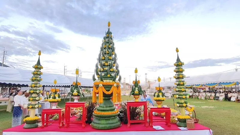 สำหรับเครื่องบวงสรวงประกอบด้วยพานบายศรี เครื่องเส้นไหว้ อาหารคาวหวาน และเครื่องสักการะตามประเพณี เพื่อแสดงถึงความเคารพศรัทธาต่อสิ่งศักดิ์สิทธิ์คู่บ้านคู่เมือง อย่างไรก็ตาม การจัดพิธีในครั้งนี้ ได้งดกิจกรรมสมโภชและการเฉลิมฉลองที่มีกำหนดจัดระหว่างวันที่ 13-14 ธ.ค. 2568 เนื่องจากสถานการณ์ความไม่สงบในพื้นที่ชายแดนไทย–กัมพูชา ซึ่งขณะนี้ จ.ศรีสะเกษ มีการปฏิบัติการทางทหารเพื่อต่อต้านภัยคุกคาม ส่งผลให้ประชาชนในพื้นที่เสี่ยง ต้องอพยพออกจากพื้นที่เป็นจำนวนมาก